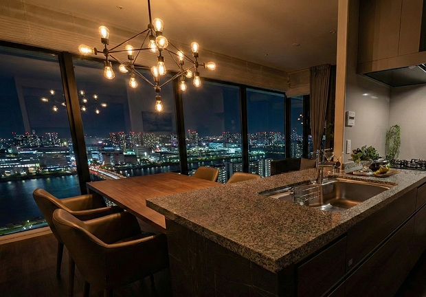 日当たりに関しても、遮るものがないため、冬場でも室内は非常に暖かく、明るい光が差し込みます。特にダイレクトウィンドウ(床から天井まで続くガラス壁)を採用しているリビングでは、刻一刻と変化する空の色や、夜のベイブリッジ、晴海フラッグの夜景をまるで絵画のように楽しむことができるでしょう。