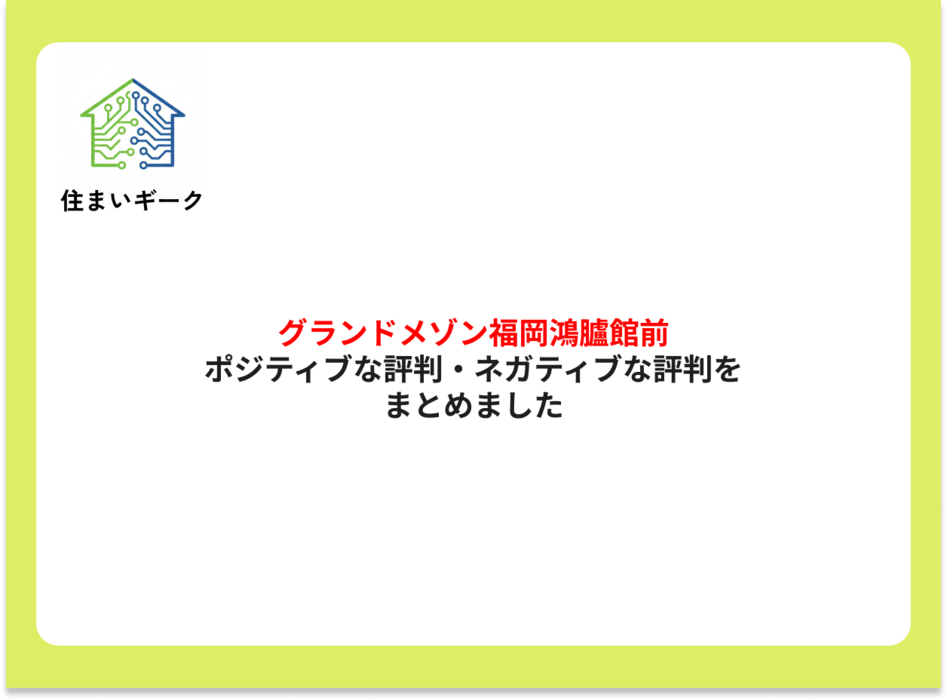 グランドメゾン福岡鴻臚館前 ポジティブ・ネガティブな評判まとめ